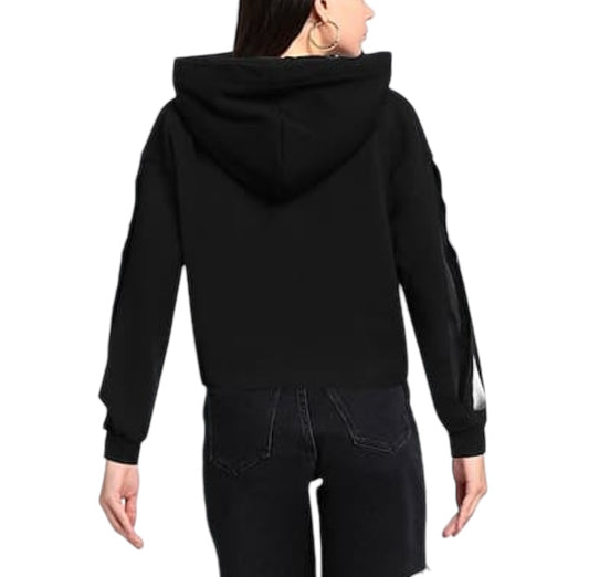 Pinko Up felpa nera elasticizzata con cappuccio e logo stampato